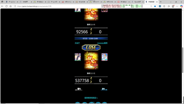 艦隊戦昼・夕勝ってるのに負け判定。報酬なし。前にもあった。