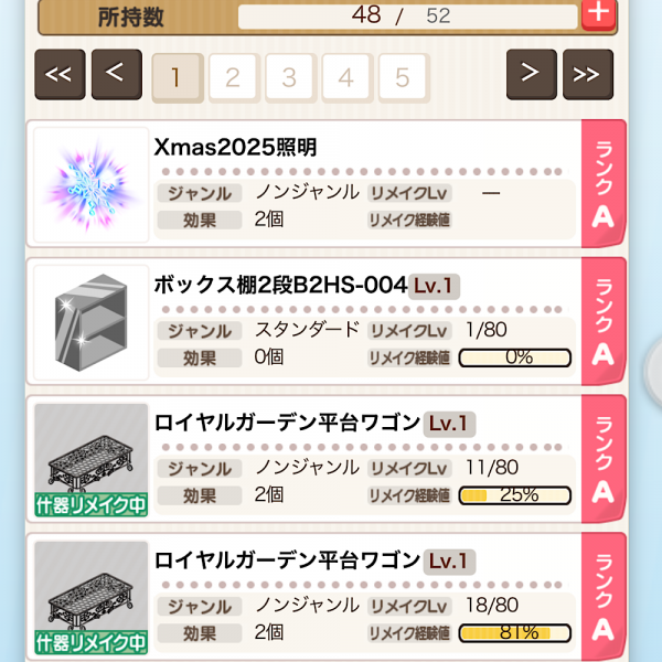 19日の「什器&装飾在庫数増加ミニチケット」×4を使用したけど、2枠しか受け取りできませんでした。