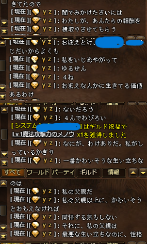 ギルド 英語でブラックアース 垢名●zが本垢 その他に●●ouu ●hinn2● ●hinn●5 ソロギルド 英語でバード 垢名 ●ouya ポンタ垢 ふ●きからゴスタ・ユオンに変更