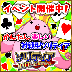 ソリティアの3人対戦ゲームが「ゲソてん」に登場! ●シンプル操作で、ルールも簡単! すぐに誰でもプレイできるよ♪ ●多彩なご褒美も充実! 段級位制だから、勝ち進めば段位や名人を獲得できるよ♪ 昇格毎にご褒美アイテムを獲得! さらに、毎月のランキングに入賞すれば賞品アイテムを獲得! 毎月違う賞品が登場するよ♪ ●二つのモードで、楽しさMAX! 3人で競い合う[対戦]モード 1人でクリア「一人プレイ」モード いろんなプレイで全国みんなが熱戦中♪
